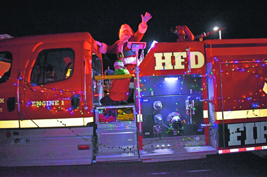 - Garrett Neese/Daily Mining Gazette Above, Santa Claus waves from the Hancock Fire Department truck during the parade that kicked off Friday’s Christmas Walk.