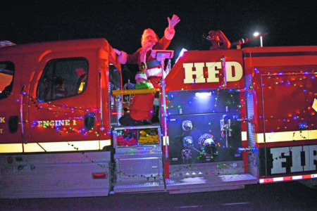 HANCOCK — As a line of families along Quincy Street watched and took photos, Santa Claus pulled up in his sleigh — or rather, on the back of a Hancock fire truck.