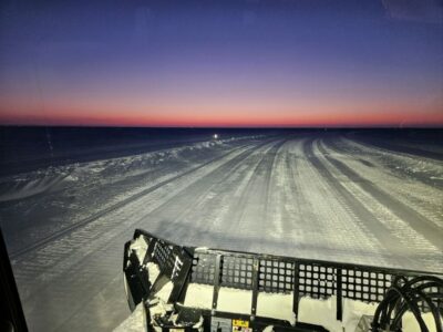 “I maintain the ice roads for semi-trucks. The trucks, like those shown on the TV Show “Ice Road Truckers,” haul material to a man-made island. That island is 14 miles out on the ice.”