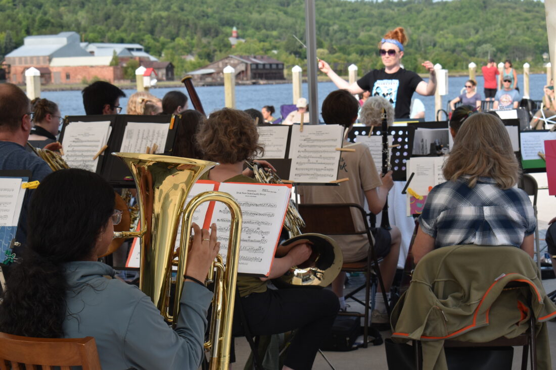Garrett Neese/Daily Mining Gazette The Copper Country Community Band plays a free concert at Houghton’s downtown pier Thursday. The pier, which the city debuted in 2022, is one of several recent developments the city plans to highlight in its presentation for the Michigan Municipal League Community Excellence Award.