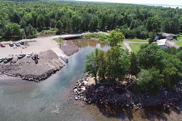 In summer 2016, the boat launch was destroyed by waters from a historic flood that impacted parts of the western Upper Peninsula and northern Wisconsin.