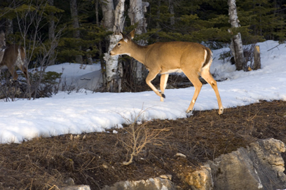 The deer took a lick, and then a few more. I spoke to the deer through the glass of the window. “Hey, that’s not for you.” The deer bowed back out from under the trees and loped away through the high snow.