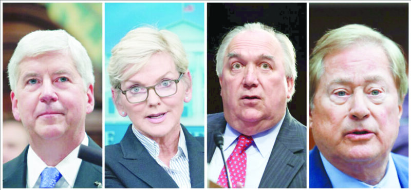Former Republican Govs. John Engler and Rick Snyder, along with former Democratic Govs. Jim ...