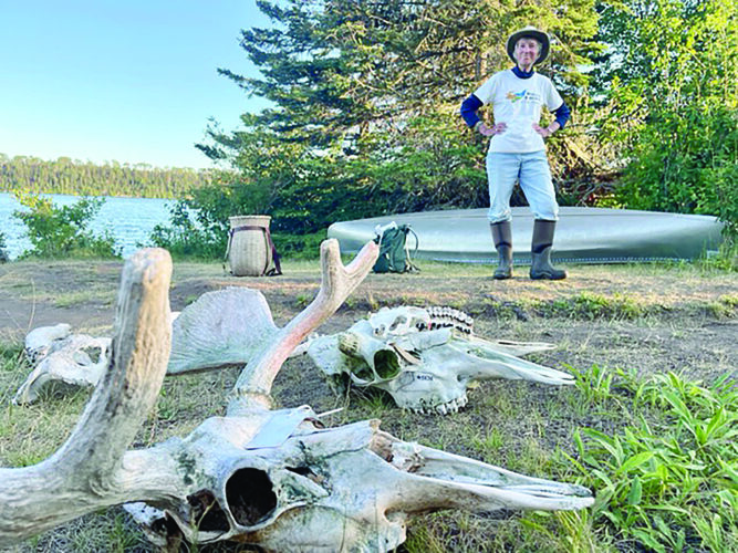 Candy Peterson poses with moose bones.