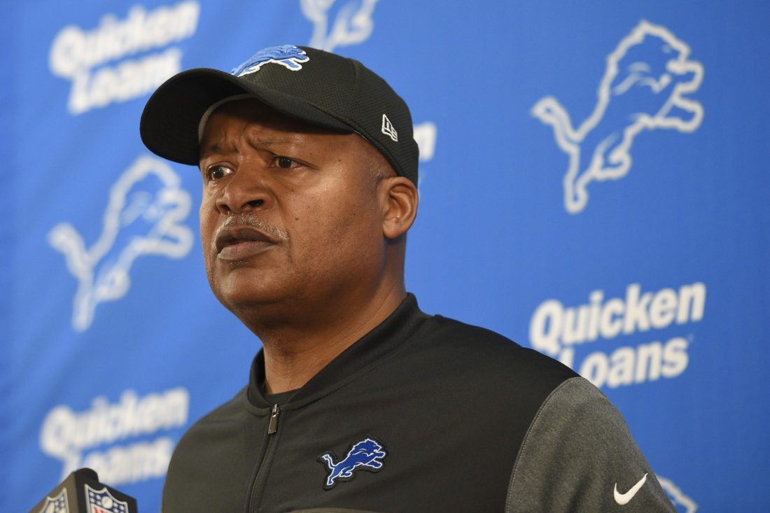 Detroit Lions head coach Jim Caldwell speaks at a news conference after an NFL football game against the Baltimore Ravens, Sunday, Dec. 3, 2017, in Baltimore. (AP Photo/Nick Wass)