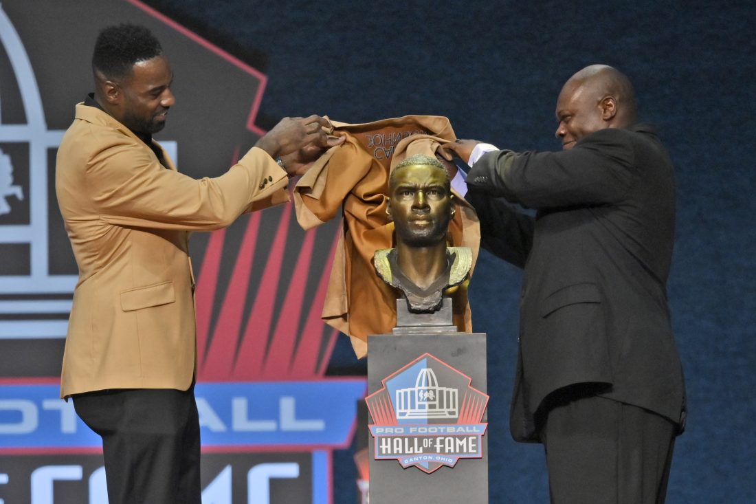 Johnson, just 35 — only Jim Brown and Gale Sayers were younger inductees — finished his nine-year career with 731 receptions for 11,619 yards and 83 TDs. He explained how, despite his seemingly indestructible nickname of Megatron, he played nearly all of his career in pain.
