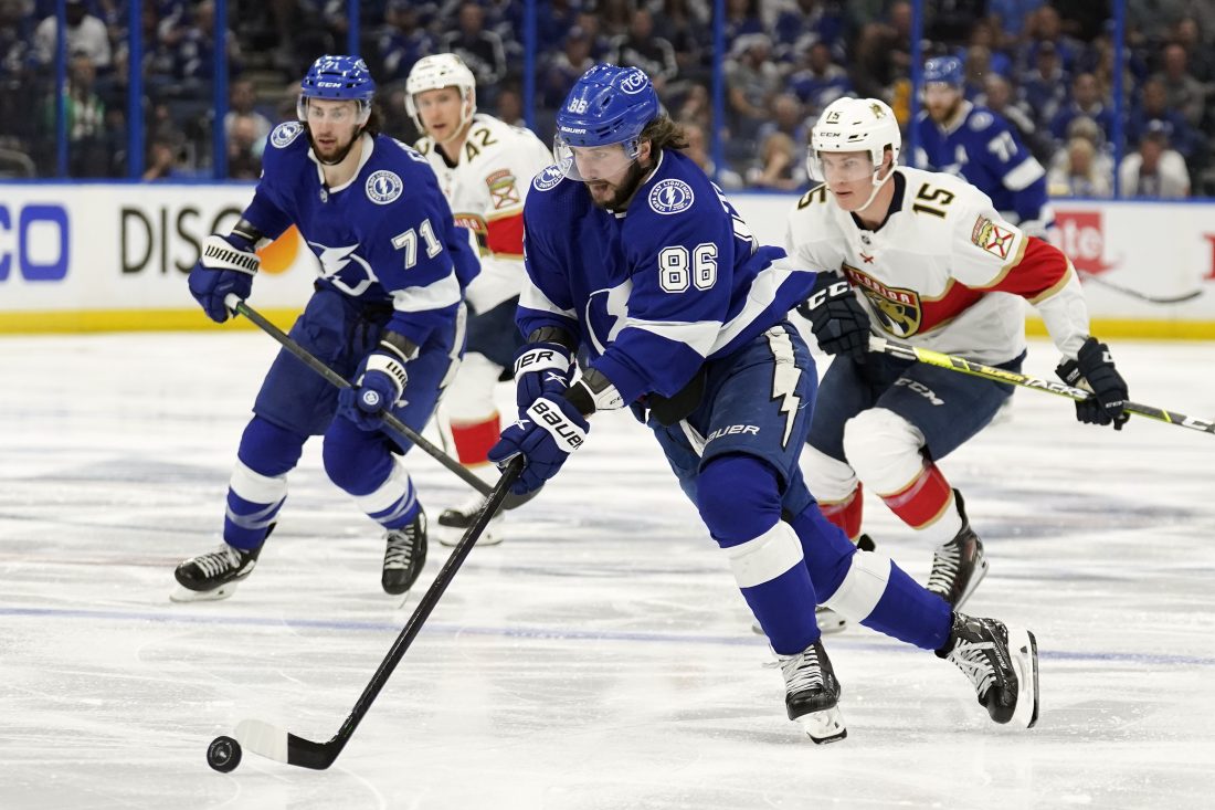 The defending champs persevered Monday night despite having goals by Alex Killorn and Nikita Kucherov waved off within a 48-second span of the second period — the first after Florida coach Andrew Brunette challenged and a lengthy replay review determined Palat lifted the puck out of play along the boards before Mikhail Sergachev fired a shot that Killorn tipped past Bobrovsky.