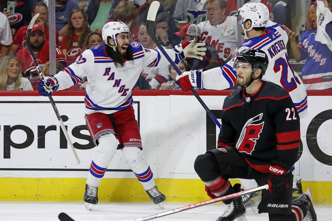 RALEIGH, N.C. (AP) — Nothing is fazing these New York Rangers, not multigame series deficit nor playing in a building where no road team has won in the Stanley Cup playoffs.