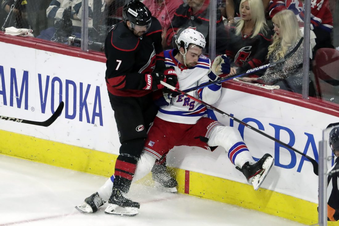 The teams combined for 43 shots and each had big penalty kills, with New York killing off more than a minute of 5-on-3 time while the Hurricanes scored their short-handed goal on a 4-minute kill for a double-minor high-sticking penalty on Brady Skjei.