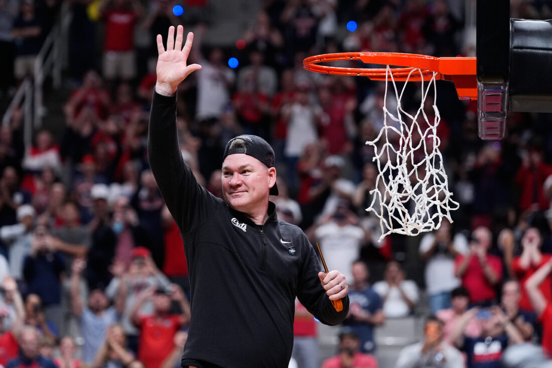 SAN JOSE, Calif. — Coach Tommy Lloyd climbed the ladder, cut the last strand of the net and waved to the Arizona fans while they chanted, “Tommy! Tommy!”