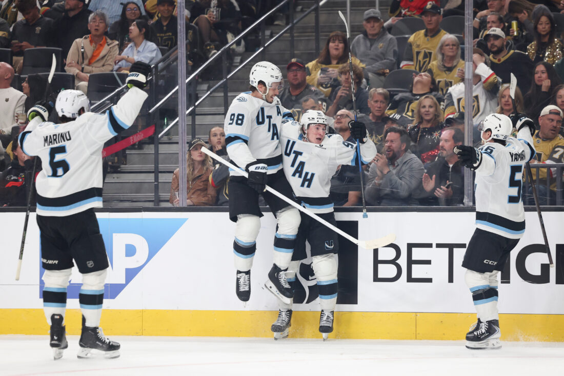 After Stone scored in the first period on a shot that went off Utah defenseman Mikhail Sergachev’s skate, the Golden Knights, for the second game in a row, had an unforced error in which the puck ended up in their net. Weegar was credited with the goal after the puck went off two Vegas defensemen — Noah Hanifin’s stick and Rasmus Andersson’s shin — into the open net.