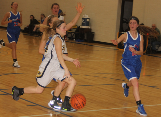 Paul Peterson photo Lela Rautiola of Chassell charges to the basket in Tuesday's game against Dollar Bay. The Panthers won the CCC game.