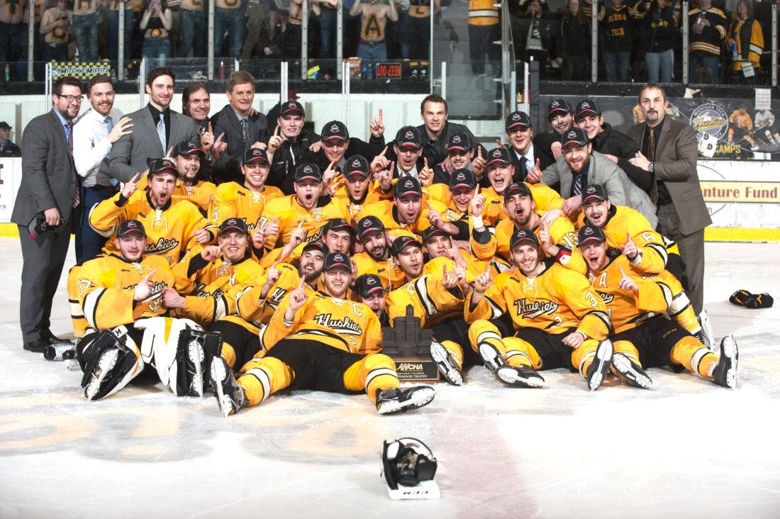 Oh, and that WCHA Playoff title, which included the Huskies’ first-ever Broadmoor Trophy, which was won at the MacInnes Student Ice Arena.