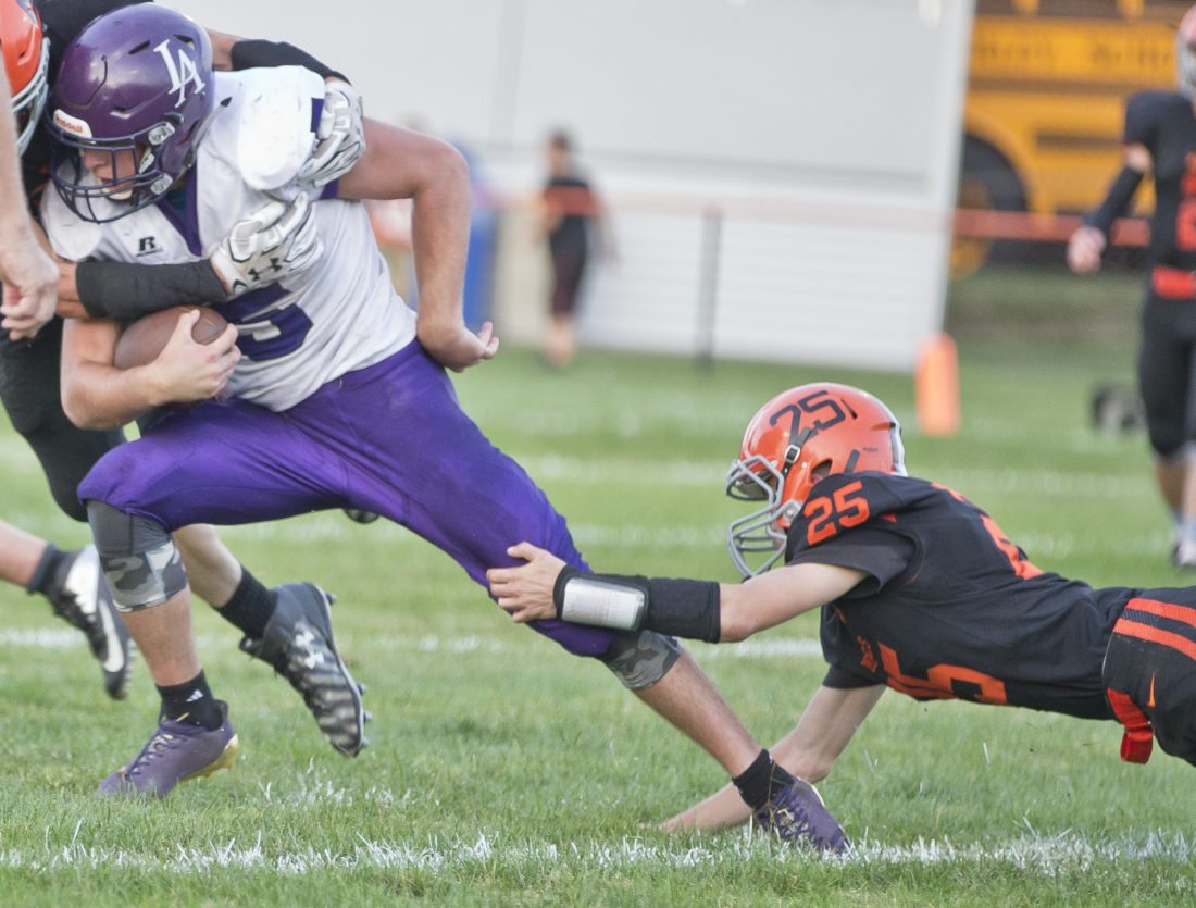 Coming into the game, L’Anse expected to pass the ball more than in last week’s 20-18 win over Hancock, but the injury to Fish — he doesn’t appear to have major knee damage — changed all that in a hurry. Miller got the ball 24 times and ran for three touchdowns.