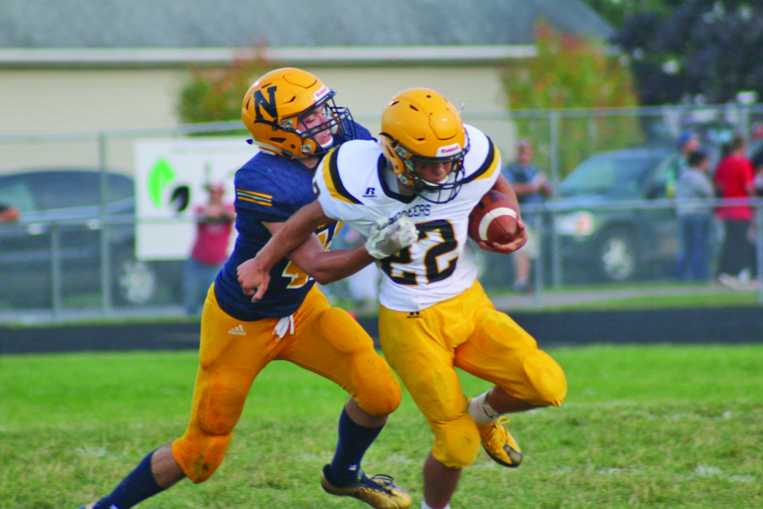 Negaunee’s Jake Hill, left, tackles Iron Mountain’s Drew DuShane Friday evening, Sept. 15, 2017, at Negaunee High School’s football field. (Journal photo by Rachel Oakley)