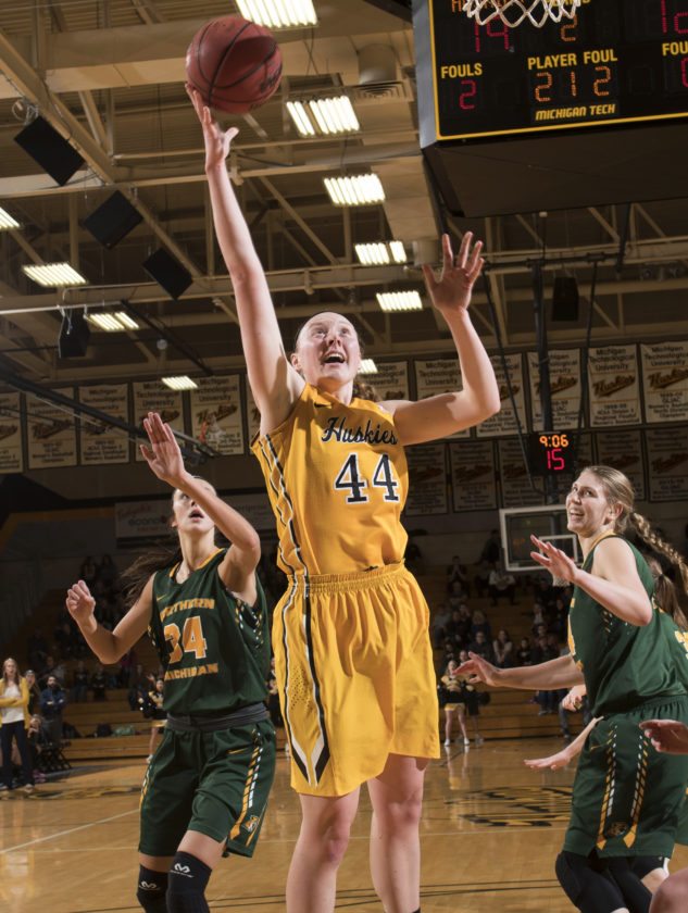 The Huskies didn’t record a 3 until senior Lindsay Winter swished one from the right wing for a 50-40 lead with 7:28 left in the fourth quarter. Tech shot just 1 of 9 from deep, but unlike 11 days ago when Tech shot 3 of 20 from 3-point range, in a 50-40 loss to Wayne State, the Huskies found other ways to score without the help of their perimeter shooting.