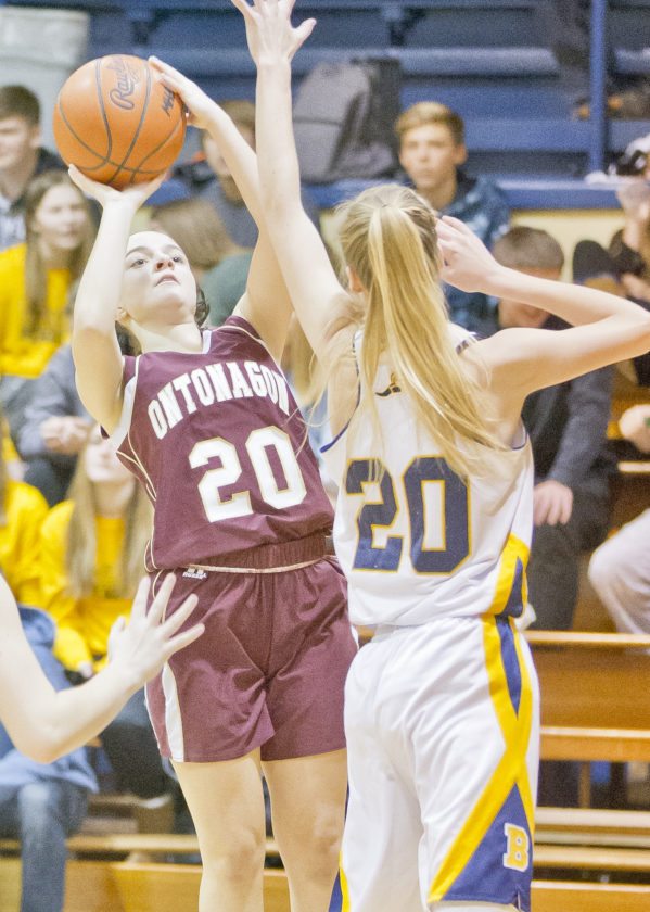 Bessemer took a 6-4 lead in the first quarter but was stuck at 6 until midway through the second quarter as Ontonagon scored 16 straight points for a 20-6 lead.