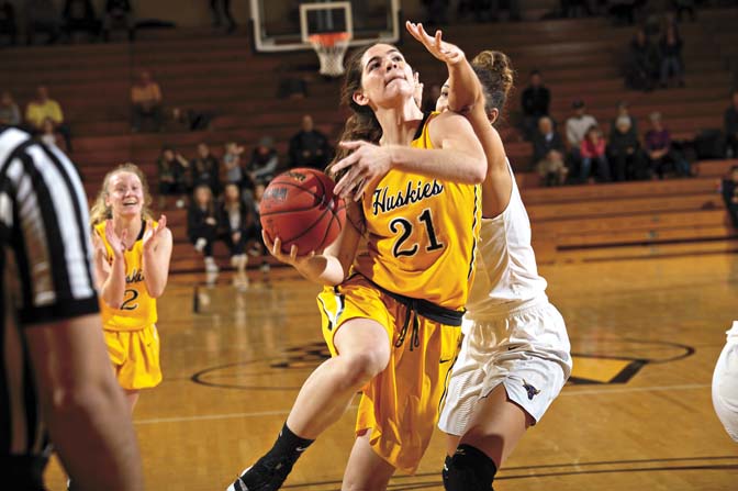 Abbie Botz led the Huskies with 16 points and 17 rebounds. She was followed by Elizabeth Kelliher who notched 15 points and nine rebounds.