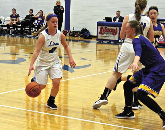 Paul Peterson/For the Gazette Finlandia's Molly Berg brings the ball upcourt Wednesday night against St. Scholastica College. The Lions scored their third straight win, 61-57.