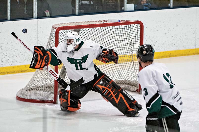 David Archambeau/Daily Mining Gazette Portage Lake goaltender Phil Mattila makes a save during the opening game of the Gibson Cup series Friday at the Calumet Colosseum. The Pioneers defeated the Wolverines, 5-4, in overtime.