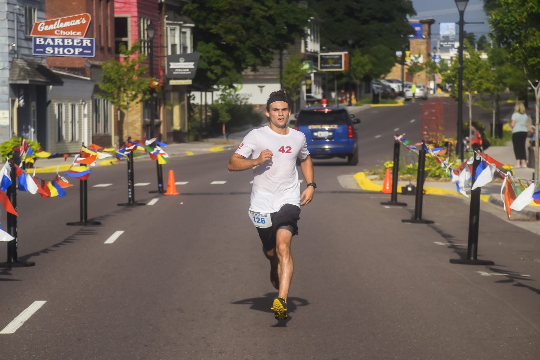Nicholas Wilson, of Mohawk, wins the half-marathon of the 2019 Canal Run in Hancock, Mich. (Daver Karnosky/The Daily Mining Gazette)