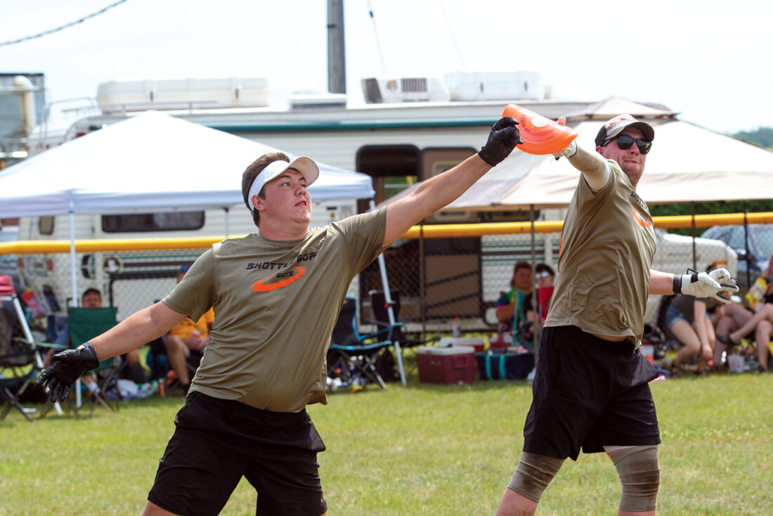 Shottle Bop’s Carter Nettell and Will Blau compete during the 64th annual International Frisbee Tournament on Sunday, July 10, 2022, in Hancock, Mich. (David Archambeau/For the Gazette)