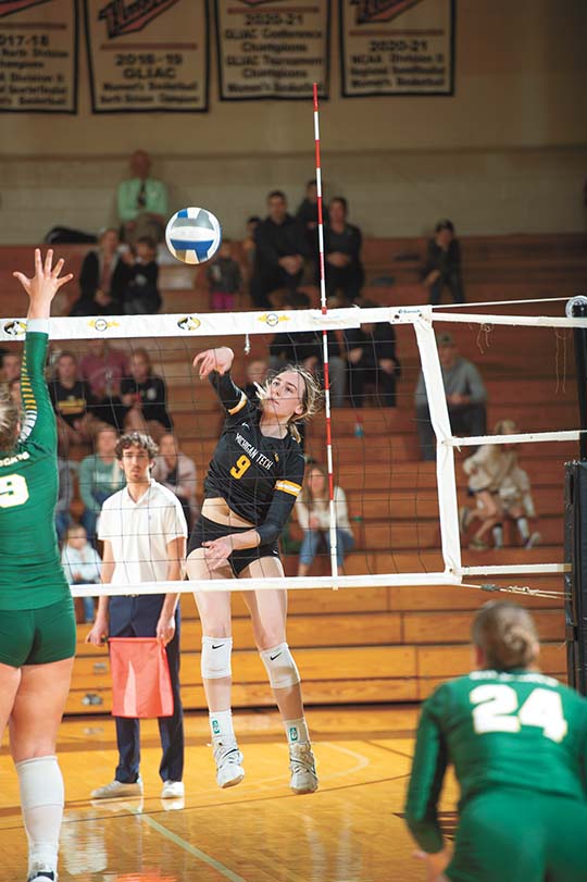 HOUGHTON — In any game or match in sports, one of the most successful strategies a team can have is to get the upper hand early and set the tone. That is exactly what the Michigan Tech Huskies volleyball team did in each set as they stunned the visiting Northern Michigan Wildcats in three sets, 25-15, 25-21, 25-12, at the SDC Gym on Tuesday.