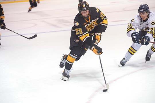 In the second period, during an early-period power play, the senior center Logan Pietila lost control of the puck just inside the Bulldogs’ blue line. Nick Nardecchia took off the other way unimpeded, but his shot was stopped by senior goaltender Blake Pietila.