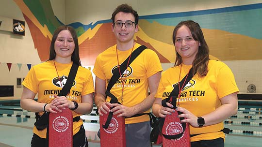 HOUGHTON — For heroic and lifesaving action at the Michigan Tech SDC Pool during a medical emergency last summer, lifeguards Leah Komarzec, Skyler Spitzley and Brett Ceane will receive the Red Cross Lifesaving Award for Professional Responders. The awards will be given in a ceremony at the SDC Pool on Tuesday (April 25) at 3:30 p.m.