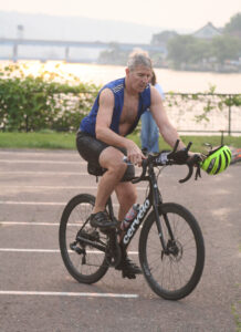 “I was pleased with my swim and my bike. Running and I do not mix well,” he quipped.
