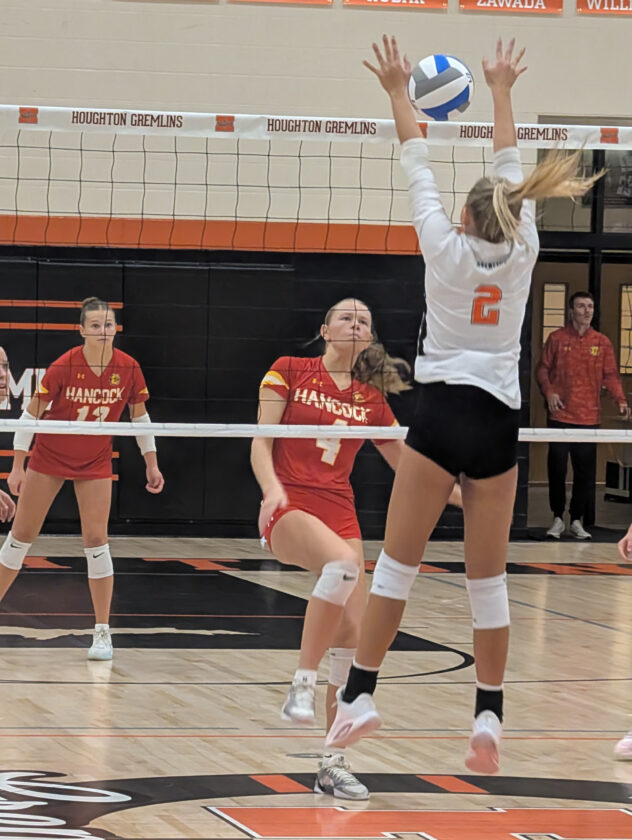 Hancock volleyball squeaks past Houghton, 3-2