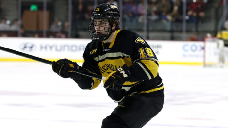 Helminen’s first goal came with the Bulldogs trailing 4-2 in the second period. He scored his 13th goal of the season at 12:36. Kilpela and sophomore forward Luciano Paoli both assisted on the goal.