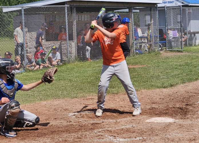 U.P. Architects and Engineers’ James Haapala watches the pitcher during the Keweenaw Little League Majors championship Saturday in Calumet. He came up with the winning hit as his team defeated North Star BP/Pepsi. (Paula Porter/For the Gazette)