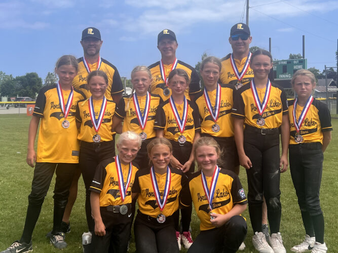 The Portage Lake Little League Minors softball team finished second in the state tournament Tuesday in Cheboygan, Michigan. Portage Lake defeated Grosse Point in the semifinal, 17-6, before falling in the championship game to Georgetown, 10-0. The team includes Avery Pietila, Allie Mettlach, ...