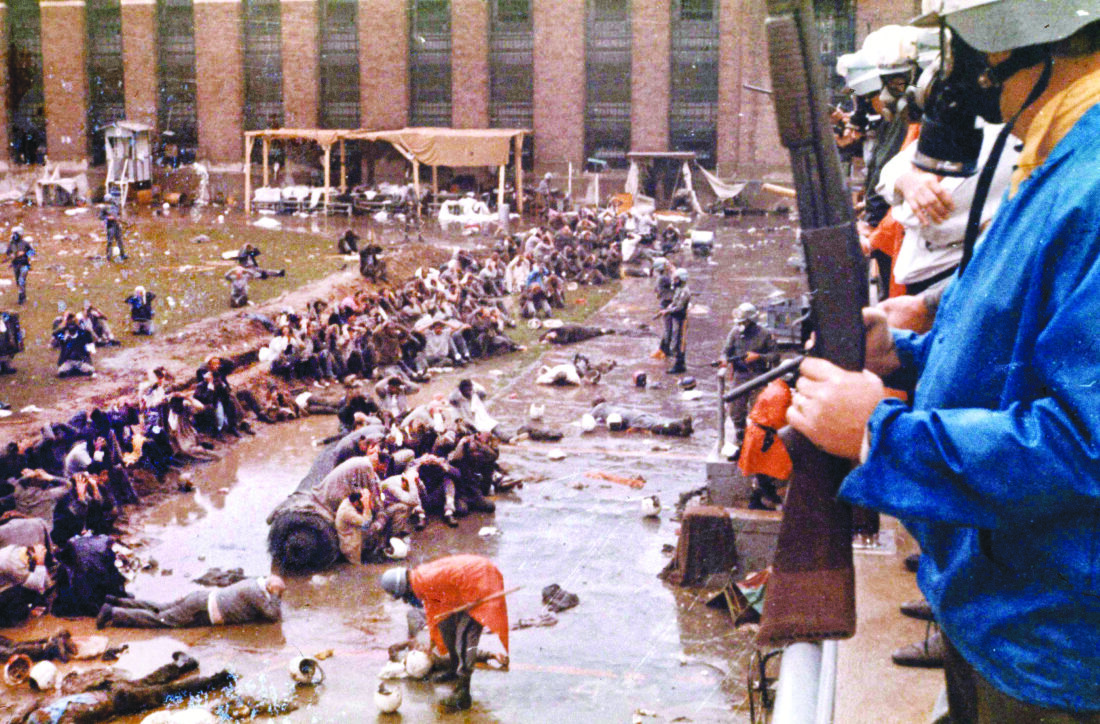 AP File photo State police in riot gear regain control of prisoners following the Attica prison riot in Attica, New York, Sept. 1971. The riot, in which 43 were killed,