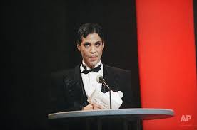 AP Photo/Nick Ut Rock singer Prince speaks at the American Music Awards,, Jan. 27, 1986 in Los Angeles.