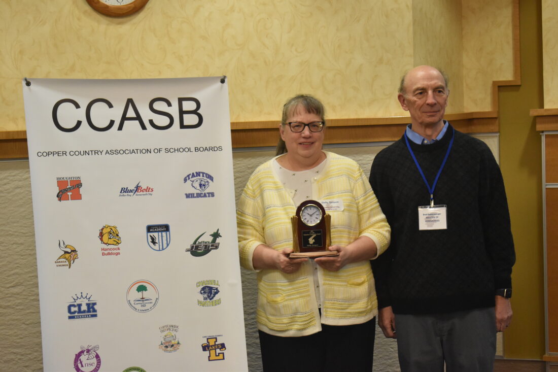 The biggest award of the night, the Copper Country Education Leadership Award, was presented to Shelby Turnquist of the Houghton-Portage Township district. Turnquist served the district for 30 years as the food service director and 20 years as a member of the Great Lakes Consortium and helped Michigan schools secure lower food costs through the USDA. She organized food service training sessions across the western U.P. and leads the nutrition program at her school.