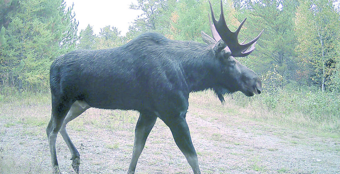 Trail/remote camera photo of a bull moose, Michigamme Highlands, Wolf Abundance Project, is pictured. (Michigan Department of Natural Resources)